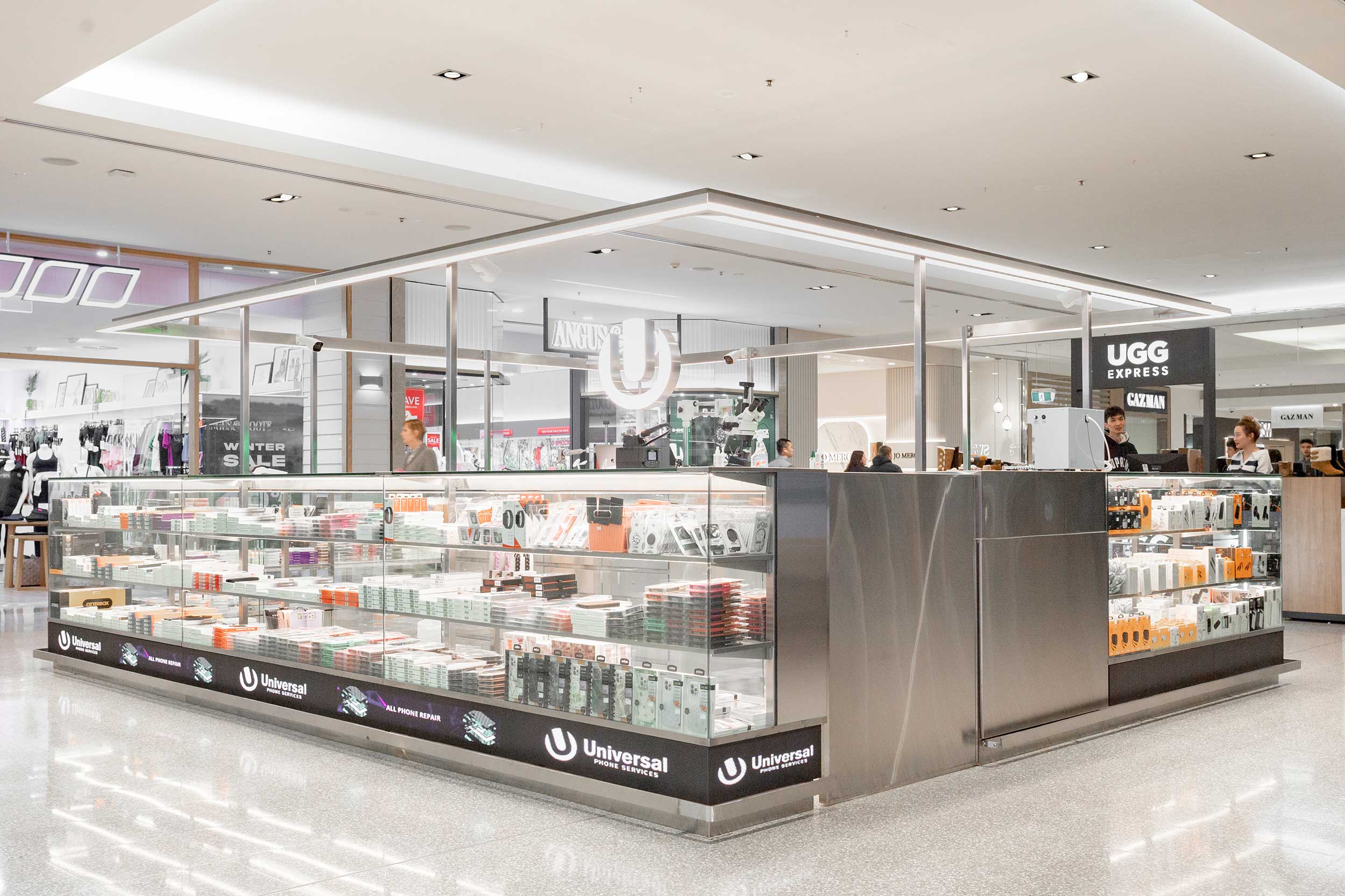 Canberra, ACTWith Universal Phone Services we aimed to change the perception of this category of store. Instead of shouting for attention in a crowded retail space, we created a minimal vessel for the products to shine.